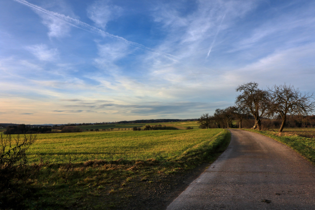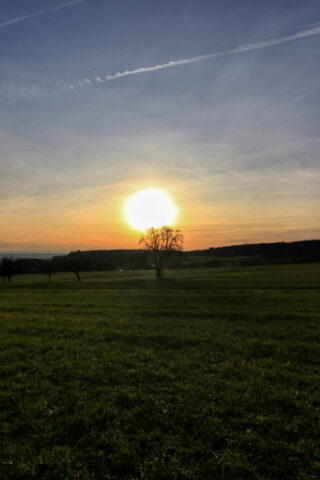 Wie man auf den Fotos sehen kann, arbeite ich gerne mit der Sonne. Ich finde, dass sie auf den Bildern gut zur Geltung kommt. Außerdem habe ich bei einigen Motiven bewusst Elemente in den Vordergrund gestellt, zum Beispiel den Baum auf der großen freien Fläche oder das Gras.
